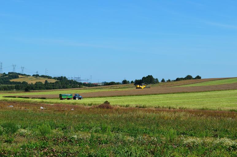 Keywords: harvest combine corn landscape tractor machine work agriculture the cultivation of food bread fief field wheat plant green