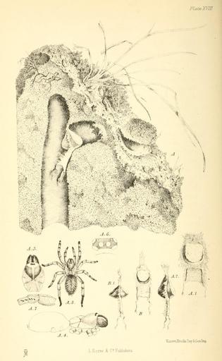 | Keywords: Harvesting ants and trap-door spiders supp. Plate 18.jpg s of the spiders by the Rev O Pickard-Cambridge Published 1874 by Reeve Co in London Creator John Traherne Moggridge other versions Custom license marker 2015 07 13 PD-old-100 Harvesting Ants and Trap-door Spiders Trapdoor spider burrows Uploaded with UploadWizard Nemesia congener |