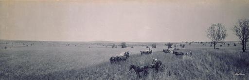 | Keywords: melvin vaniman melvin vaniman melvinvaniman photography panorama state library statelibrary grenfell 1903 brundah station stripper state library of new south wales statelibraryofnewsouthwales outdoor A procession of horse drawn strippers harvest a record crop from the 5000 acres under cultivation on John and Philip Wood's sheep and wheat property. The Ridley stripper was an Australian invention that removed the seed from standing wheat using a comb and rotating bars, and stored it in the 'boot' of the machine for later winnowing.  Find more information about the Melvin Vaniman collection of photographic panoramas in the State Library of New South Wales' catalogue: acms.sl.nsw.gov.au/item/itemdetailpaged.aspx?itemid=413018 A procession of horse drawn strippers harvest a record crop from the 5000 acres under cultivation on John and Philip Wood's sheep and wheat property. The Ridley stripper was an Australian invention that removed the seed from standing wheat using a comb and rotating bars, and stored it in the 'boot' of the machine for later winnowing.  Find more information about the Melvin Vaniman collection of photographic panoramas in the State Library of New South Wales' catalogue: acms.sl.nsw.gov.au/item/itemdetailpaged.aspx?itemid=413018  |