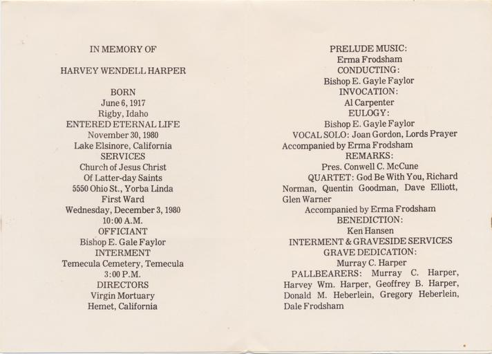 Keywords: Harvey Sr. funeral brendaharper