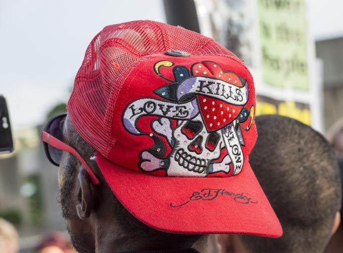 Keywords: hat man design red male city baltimore urban people african american man black clothing human guy adult lifestyle fashion style protest maryland