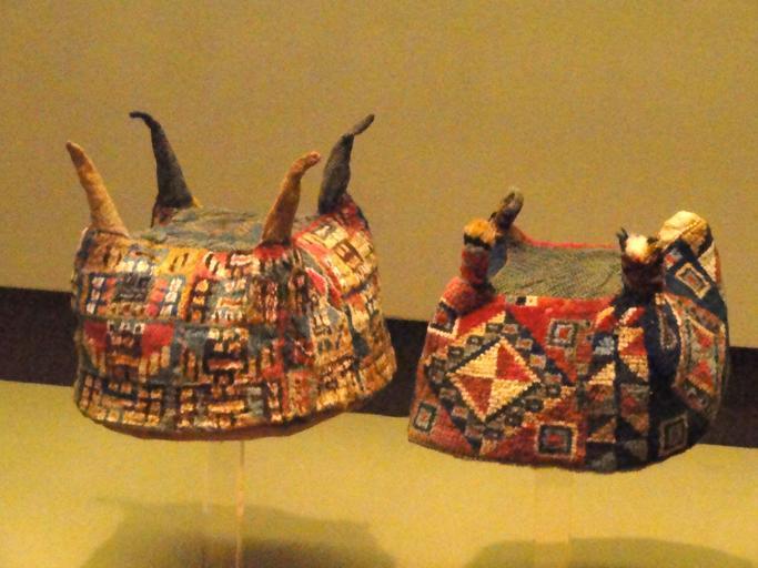 Keywords: Hats, camelid fiber, Wari style, Peru - South American objects in the American Museum of Natural History - DSC06119.JPG Exhibit in the South American collection of the American Museum of Natural History Manhattan New York City New York USA Photography was permitted in the museum without restriction Daderot 2012-04-02 11 52 57 Daderot cc0 cc0 South American objects in the American Museum of Natural History Peruvian fabric in the American Museum of Natural History Wari culture Indigenous textile arts of the Americas |