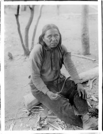 | Keywords: Havasupai Indian man, Rock Jones, leading medicine man, ca.1899 (CHS-3767).jpg en <br> Havasupai Indian man Rock Jones leading medicine man ca 1899 Photograph of a Havasupai Indian man Rock Jones leading medicine man ca 1899 He is sitting on a log outside He holds the end of a narrow leather strap in his right hand on his right thigh His left hand lays on his left knee He has long shoulder-length dark hair parted up the middle Several tree trunks are visible behind him Call number CHS-3767 Photographer James George Wharton Filename CHS-3767 Coverage date circa 1899 Part of collection California Historical Society Collection 1860-1960 Type images Part of subcollection Title Insurance and Trust and C C Pierce Photography Collection 1860-1960 Repository name USC Libraries Special Collections Format glass plate negatives Microfiche number 1-167- Archival file chs_Volume95/CHS-3767 tiff Repository address Doheny Memorial Library Los Angeles CA 90089-0189 Geographic subject country USA Format aacr2 2 photographs glass photonegative photoprint b w ; 22 x 17 cm Rights Digitally reproduced by the USC Digital Library; From the California Historical Society Collection at the University of Southern California Subject adlf tribal areas Project USC Accession number 3767 Repository email specol usc edu Contributing entity California Historical Society Date created circa 1899 Publisher of the digital version University of Southern California Libraries Format aat photographic prints; photographs Legacy record ID chs-m16352; USC-1-1-1-13517 Access conditions Send requests to address or e-mail given Phone 213 821-2366; fax 213 740-2343 Subject file heading Indians -- Havasupai Subject lcsh Indians of North America; Havasupai Indians; Men; Shaman; Clothing and dress Subject Havasupai Indians circa 1899 date created James George Wharton http //digitallibrary usc edu/cdm/ref/collection/p15799coll65/id/16291 PD-old-70-1923 Images from USC Digital Library uploaded by Fæ California Historical Society Collection 1860-1960 Glass plate negatives Havasupai Photographs by George Wharton James Havasupai medicine men |