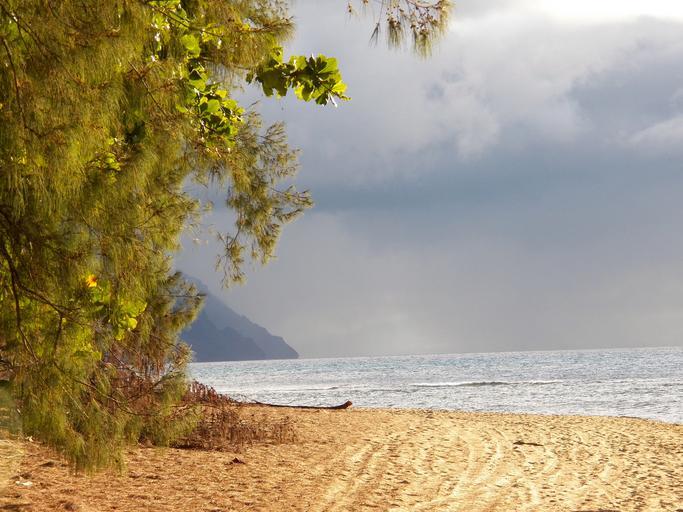 Keywords: hawaii kauai sea ocean nature water beach recreation relax fun holiday island vacation travel leisure sand paradise tranquil clouds