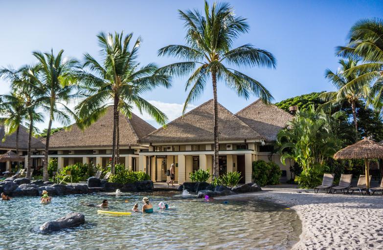 Keywords: hawaii oahu resort ko olina marriott pool palm trees outdoor person people travel summer tourism holiday