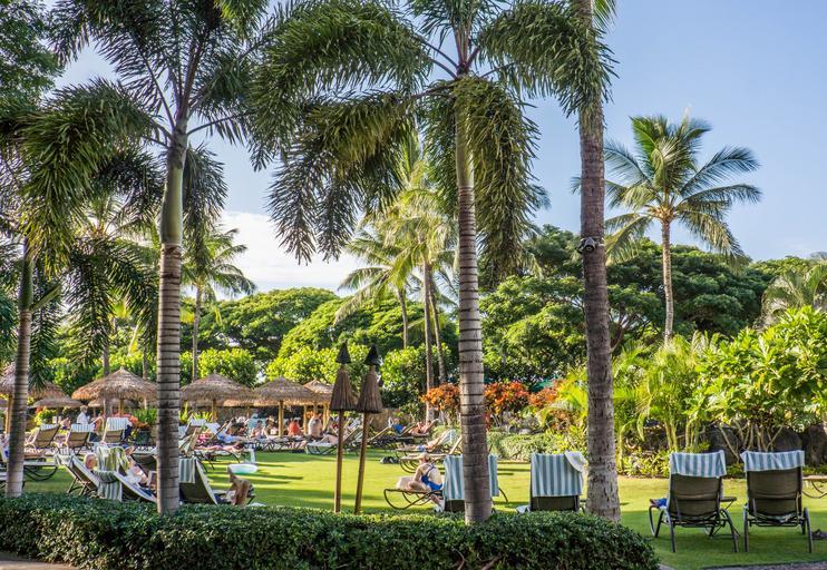 Keywords: hawaii oahu resort ko olina marriott pool palm trees outdoor person people travel summer tourism holiday