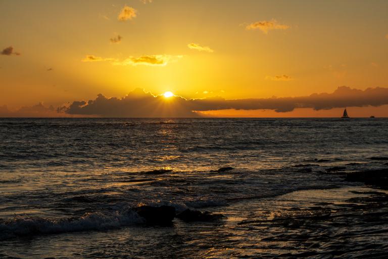 Keywords: hawaii sunset beach ocean sea summer vacation hawaii beach travel beach sunset sun lifestyle sunrise tropical sunset beach nature water sky silhouette island sunrise beach holiday pacific sand hawaiian coast outdoor relaxation coastline rock