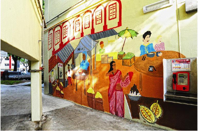 Keywords: Hawker Mural.png A mural at Stirling Road w Singapore paying tribute to streetside hawkers Own Rebekahanthony 2010-07-21 Murals in Singapore Pedlars in art Queenstown Singapore Street food in Singapore