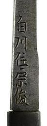 | Keywords: Hayashi Masamitsu - Kozuka with Herons and Reeds - Walters 5111833 - Mark B.jpg At the right of the composition two herons are shown standing beneath reeds Incised lines on the left indicate water This is part of a mounted set 1864 late Edo silver shakudo gold cm 22 2 accession number 51 1183 3 5102 William T / Henry Walters Collection Baltimore date and mode of acquisition unknown Walters Art Museum Henry Walters Acquired by William T or Henry Walters Date Genji gentoshi kinoe ne chûka; Translation first year of Genji 1864 year of the rat 5th month; Signature Ichiryûsai Masamitsu sei; Translation Made by Ichiryûsai Masamitsu place of origin Aizu Japan Walters Art Museum license Kozuka in the Walters Art Museum Hayashi Masamitsu Media contributed by the Walters Art Museum needs category review |