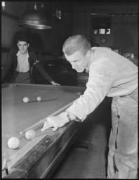 Keywords: Hayward, California. Pool Recreation. Ten minutes to four by the wrist watch of this high school boy with the cue. In... - NARA - 532240.tif Scope and content General notes 532240 Local identifier 119-CAL-185 Federal Security Agency National Youth Administration 07/01/1939 - 09/17/1942 NARA-Author Partridge Rondal 1917- Photographer 8464464 <br /> Still Picture Records Section Special Media Archives Services Division NWCS-S National Archives at College Park 8601 Adelphi Road College Park MD 20740-6001 1940-04-20 Record group Record Group 119 Records of the National Youth Administration 1934 - 1945 Record group ARC 448 Study of Youth Photographs compiled 1940 - 1940 Series ARC 532065 File unit File unit ARC Variant control numbers NAIL Control Number NWDNS-119-CAL-185 yes Other versions NARA-cooperation PD-USGov Rondal Partridge 1940 in California Males looking down Pool players National Youth Administration Hayward in the 1940s Adolescent boys in the United States People of Hayward California |