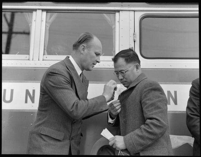 | Keywords: Hayward, California. The Reverend John Carlos Derfelt, Baptist Minister, ties identification tag in . . . - NARA - 537498.jpg Scope and content The full caption for this photograph reads Hayward California The Reverend John Carlos Derfelt Baptist Minister ties identification tag in coat lapel of the Reverend Sui Hiro of the San Lorenzo Holiness Church as he prepares to board evacuation bus The Reverend Hiro is a graduate of the University of Tokyo Evacuees of Japanese ancestry will be housed in War Relocation Authority centers for the duration General notes 537498 Local identifier 210-G-C146 Department of the Interior War Relocation Authority 02/16/1944 - 06/30/1946 NARA-Author Lange Dorothea 1895-1965 Photographer 1372774 <br /> Still Picture Records Section Special Media Archives Services Division NWCS-S National Archives at College Park 8601 Adelphi Road College Park MD 20740-6001 1942-05-08 Record group Record Group 210 Records of the War Relocation Authority 1941 - 1989 Record group ARC 537 Central Photographic File of the War Relocation Authority compiled 1942 - 1945 Series ARC 536000 File unit File unit ARC Variant control numbers NAIL Control Number NWDNS-210-G-C146 Other versions <gallery> File Hayward _California _The_Reverend_John_Carlos_Derfelt _Baptist_Minister _ties_identification_tag_in_ _ _ _-_NARA_-_537498 tif tif File Hayward _California _The_Reverend_John_Carlos_Derfelt _Baptist_Minister _ties_identification_tag_in_ _ _ _-_NARA_-_537498 jpg jpg </gallery> NARA-cooperation PD-USGov Japanese American internment processing in Hayward Dorothea Lange Different races of people together Holiness churches Baptists from the United States Alumni of the University of Tokyo 20th-century men of the United States People of the United States in 1942 |