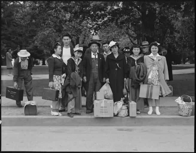 | Keywords: Hayward, California. This farm family await evacuation bus. Father and mother immigrated from Japa . . . - NARA - 537508.jpg Scope and content The full caption for this photograph reads Hayward California This farm family await evacuation bus Father and mother immigrated from Japan and their eleven children were born in the United States The father operated a small operated a small farm growing tomatoes and berries Evacuees of Japanese ancestry will be housed at War Relocation Authority centers for the duration General notes 537508 Local identifier 210-G-C156 Department of the Interior War Relocation Authority 02/16/1944 - 06/30/1946 NARA-Author Lange Dorothea 1895-1965 Photographer 1372774 <br /> Still Picture Records Section Special Media Archives Services Division NWCS-S National Archives at College Park 8601 Adelphi Road College Park MD 20740-6001 1942-05-08 Record group Record Group 210 Records of the War Relocation Authority 1941 - 1989 Record group ARC 537 Central Photographic File of the War Relocation Authority compiled 1942 - 1945 Series ARC 536000 File unit File unit ARC Variant control numbers NAIL Control Number NWDNS-210-G-C156 Other versions <gallery> File Hayward _California _This_farm_family_await_evacuation_bus _Father_and_mother_immigrated_from_Japa_ _ _ _-_NARA_-_537508 tif tif File Hayward _California _This_farm_family_await_evacuation_bus _Father_and_mother_immigrated_from_Japa_ _ _ _-_NARA_-_537508 jpg jpg </gallery> NARA-cooperation PD-USGov Dorothea Lange Japanese American internment processing in Hayward 1942 in California Families of the United States Farmers from the United States Overalls People of the United States in 1942 Women with hats Men with hats |