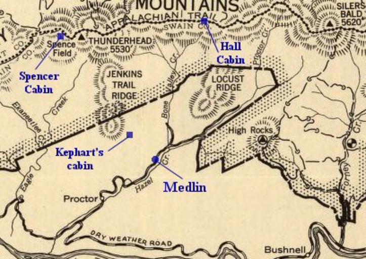 | Keywords: Hazel-creek-nc-map1.jpg Map of the Hazel Creek valley in the Great Smoky Mountains of the U S state of North Carolina showing various locations mentioned by author Horace Kephart in his 1913 book Our Southern Highlanders This map has been modified mainly the addition of the locations in blue from a detailed portion of a National Park Service map drawn in 1940 before the creation of Fontana Lake and while much of the valley was still in private hands The locations in blue existed when Kephart was active in the area 1904-1907 but not necessarily in 1940 The Appalachian Trail built with Kephart's suggestions roughly follows the Tennessee-North Carolina border Approximate coordinates for these locations <br><br> Spencer cabin N35 56357° W83 73063° <br> Hall cabin N35 56624° W83 64190° <br> Siler's Meadow N35 56401° W83 56682° <br> Medlin N35 49465° W83 68889° <br> Kephart's cabin N35 50813° W83 70958° <br> Proctor N35 47382° W83 72161° <br> Bushnell N35 43715° W83 58521° <br> http //hdl loc gov/loc gmd/g3902g np000243 U S Library of Congress 1940 modified blue locations added May 2009 A J Reixach modified by Brian Stansberry PD-USGov Maps of the Great Smoky Mountains National Park Maps of North Carolina Hazel Creek North Carolina |