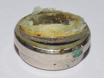 Keywords: HD 625 button cell (leaked decomposing).jpg en Leaking HD 625 button cell battery Apparently a mercury-based cell and no longer made This was the light meter battery in my Zenit TTL until I unpacked it today- it looked like it might have forced the battery cover off Could be around 30 years old- I don't recall ever replacing the battery from the time I bought the camera secondhand in the mid-80s until I stopped using it in the late-90s 2015-03-07 19 28 40 own Multicherry other versions HD 625 button cell jpg 150 cc-zero Uploaded with UploadWizard Images by User Multicherry Leaked electric batteries Button_cells