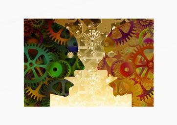 Keywords: head face silhouette clock time gear gears blue way of thinking way of life attitude to life life style modern style hour time of pointer zeitgeist drive together community transmission group industry collective mechanics teamwork technology wheels how works