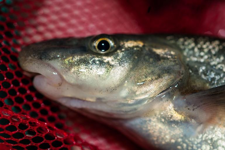 Keywords: Head of the longnose dace.jpg longnose dace Rhinichthys cataractae a a freshwater minnow native to North America The habitat of the longnose dace is cool to moderately cool streams and rivers with sandy and/or gravelly bottoms A bottom-dwelling fish the small dots on the dace's body help camouflage it against the sand enabling the longnose dace to avoid predators http //www flickr com/photos/usfwsmtnprairie/14146186054 U S Fish and Wildlife Service 2014-05-07 Rhinichthys cataractae PD-USGov |