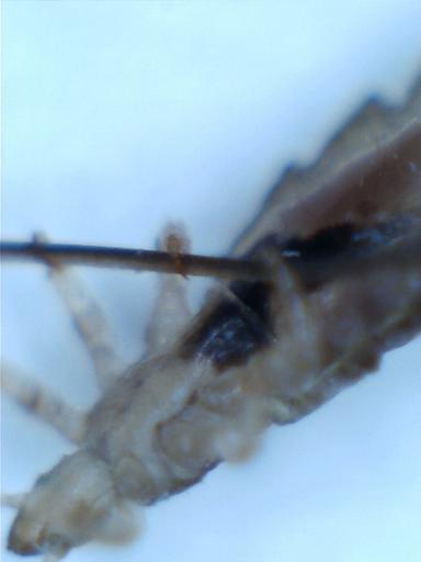 Keywords: Head louse on human hair.jpg Uploaded with en wp UW marker 2012 05 11 Image of a head louse showing detail of claw gripping a human hair Taken with USB microscope 2012-05-11 JulesH cc-zero Microscopic images of insects Pediculus humanus capitis Cc-zero |
