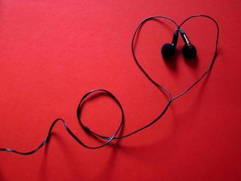 Keywords: headphones audio black songs mp3 red music portable device technical device audioplayer listen song entertainment singing play sing fun heart music heart
