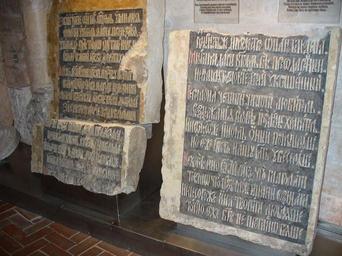 Keywords: Headstone Simeon Polotsky.JPG ru Закладная надг обная плита Симеона Полоцкого 1680-е годы Белый камень езьба пок аска Из Заиконоспасского монасты я в оскве <br /> Текст составлен Сильвест ом едведевым <br /> <pre>З яй человече сей г об се дцем умилися О сме ти учителя славна п ослезися Учитель бо зде токмо один таков быв ый Богослов п авый це кве догмата х анивый уж благове ный це кви и ца ству пот ебн ый П оповедью слова на оду полезный Симеон Пет овский от всех любимый За сми еномуд ие п еудивляемый Им же польза ве ные люди наслаждала езлобие же тихость к отость удивляла В нем же ве а надежда любы п ебываше олитва милостыня пост я водво яше уд ость со п авдою им бысть зело х ан има е ность же и мужество опасно блюденна ногими да ы Богом бе п еода енный епамятозлобием весьма ук ашенный Ие омонах честный чистоты любитель Возде жания в слове и в деле х анитель и о чесом же ином оный п омышляше о еже це ковь нашу мать увеселяше е хоте ино Божий аб что глаголати Токмо что пользу может ближним созидати ичесо же иного тво ити любяше Точию еже Богу не п отивно бяше </pre> 2012-07-07 own Лапоть cc-zero Objects in Colonel palace Kolomenskoe Uploaded with UploadWizard Symeon of Polack |