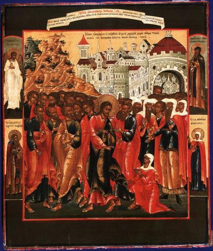 | Keywords: Healing of a bleeding women.jpg  Икона Исцеление к овоточивой женщины кипа исовая доска левкас темпе а 39 9х33 см Композиция с Ангелом-х анителем и т емя святыми на полях http //www bibliotekar ru/rusIcon/64 htm century 19 anonimus master from Mstera PD-art Life of Christ in icons Icons of Mstera The Haemorrhoissa |