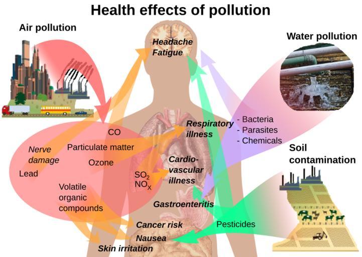 | Keywords: Health effects of pollution.svg en Overview of main health effects on humans from some common types of pollution See Wikipedia Pollution Human health To discuss image please see Template talk Human body diagrams References For air pollution http //earthtrends wri org/updates/node/325 World Resources Institute August 2008 Monthly Update Air Pollution's Causes Consequences and Solutions Submitted by Matt Kallman on Wed 2008-08-20 18 22 Retrieved on April 17 2009 For water pollution http //www waterhealthconnection org/chapter3 asp waterhealthconnection org > Overview of Waterborne Disease Trends By Patricia L Meinhardt MD MPH MA Author Retrieved on April 16 2009 For soil contamination http //pubs cas psu edu/FreePubs/pdfs/uo198 pdf Pennsylvania State University > Potential Health Effects of Pesticides by Eric S Lorenz 2007 All used images are in public domain Human body diagrams File Atmosphere_composition_diagram jpg Water pollution image http //article wn com/view/2009/03/21/Right_to_water_at_centre_of_world_forum_debate/ World news > 'Right to water' at centre of world forum debate Middle East Online Read News Article - noted photo Public domain photo Mikael Häggström 2009-04-17 thumb left png-format Human body diagrams Pollution SVG diagrams of the adult male human body by Mikael Häggström Physiological effects |