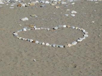 Keywords: heart beach sand stones love holiday lovers valentine symbol feelings affection romantic valentine's day