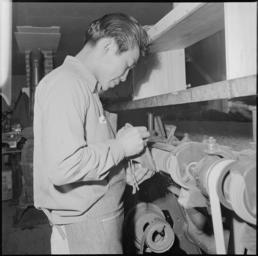 | Keywords: Heart Mountain Relocation Center, Heart Mountain, Wyoming. A shoemaker busy on a machine in a shoe . . . - NARA - 539210.tif Scope and content The full caption for this photograph reads Heart Mountain Relocation Center Heart Mountain Wyoming A shoemaker busy on a machine in a shoe repair shop at the center With all available shoemakers at work the flood of shoe repairs is so great that completed work is promised in three months The rough countryside and a town without sidewalks and pavement areas make short work of foot gear General notes 539210 Local identifier 210-G-E653 Department of the Interior War Relocation Authority 02/16/1944 - 06/30/1946 NARA-Author Parker Tom Photographer 4682167 <br /> Still Picture Records Section Special Media Archives Services Division NWCS-S National Archives at College Park 8601 Adelphi Road College Park MD 20740-6001 1943-01-11 Record group Record Group 210 Records of the War Relocation Authority 1941 - 1989 Record group ARC 537 Central Photographic File of the War Relocation Authority compiled 1942 - 1945 Series ARC 536000 File unit File unit ARC Variant control numbers NAIL Control Number NWDNS-210-G-E653 yes Other versions <gallery> File Heart_Mountain_Relocation_Center _Heart_Mountain _Wyoming _A_shoemaker_busy_on_a_machine_in_a_shoe_ _ _ _-_NARA_-_539210 tif tif File Heart_Mountain_Relocation_Center _Heart_Mountain _Wyoming _A_shoemaker_busy_on_a_machine_in_a_shoe_ _ _ _-_NARA_-_539210 jpg jpg </gallery> NARA-cooperation PD-USGov Heart Mountain War Relocation Center NARA TIF images with categorized JPGs Shoemakers from the United States |