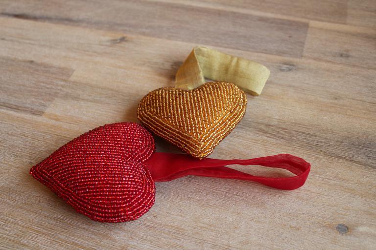 Keywords: heart pillow deco valentine's day love decoration hand labor decorate sewn hobby beads red yellow