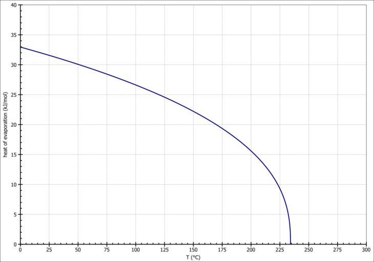 | Keywords: Heat of evaporation n-Hexane.svg en Heat of evaporation of n-hexane - temperature dependence de Verdampfungswärme von n-Hexan - Temperaturfunktion own Steffen 962 2011-02-26 calculated according/berechnet nach Δ<sub>V</sub>H<sup>0</sup> A·exp ˆ’a·T<sub>r</sub> 1 ˆ’T<sub>r</sub> <sup>β</sup> Δ<sub>V</sub>H<sup>0</sup> in kJ/mol T<sub>r</sub> T/T<sub>c</sub> reduzierte Temperatur mit A 43 85 kJ/mol a -0 039 β 0 397 und T<sub>c</sub> 507 4 K V Majer V Svoboda Enthalpies of Vaporization of Organic Compounds A Critical Review and Data Compilation Blackwell Scientific Publications Oxford 1985 300 Cc-zero Hexane Heat of evaporation Physical chemistry |