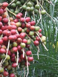 Keywords: HedescepeFruitKerikeri.jpg Fruits of Hedyscepe canterburyana a palm endemic to Lord Howe Island Australia Specimen in cultivation at South Pacific Palms Kerikeri New Zealand The fruits take four years to ripen and it is difficult to tell when they are ripe The egg-shaped fruit are deep red when ripe and about 4 cm long They appear in densely bunched fruiting spikes from below the crownshaft Each fruit contains a single seed Own 2010-12-31 Kahuroa Kahuroa Files by User Kahuroa Arecaceae in New Zealand |