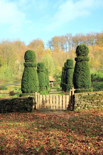Keywords: hedge garden goal garden gate fence boxwood decorative autumn
