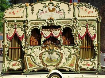 Keywords: Heen en weer draaiorgel.JPG nl Draaiorgel Heen en Weer gefotografeerd in Fort VIII te Hoboken in 2010 <br/> Een informatiebord bij het orgel gaf de volgende uitleg <br/> De Heen en Weer werd in 1909 gebouwd door de Antwerpse orgelbouwer J Burssens en is daarmee het oudste bekende orgel van dit fabricaat Origineel werd het als dansorgel gebruikt Reeds kort na de eerste wereldoorlog werd het orgel naar Holland overgebracht en verbouwd tot een compacter straatorgel Dit was het lot van vele Belgische dansorgels Het instrument zelf bleef echter wel in zijn oorspronkelijk volume bewaard en het grootste deel van het front dat men nu ziet is nog steeds het originele Enkel de kap bovenop het orgel werd in die jaren bijgemaakt ¦ Toen het orgel voor het eeuwfeest 100 jaar Orgelbouw Bursens in oktober 2008 opdook greep Alberic Godderis uit De Panne de kans om het historisch instrument in zijn atelier te halen Het instrument werd terug speelklaar gemaakt daar het orgel na dat eeuwfeest de geest had gegeven Mechanisch is het instrument er weer helemaal bovenop Later volgden nog enkele aanpassingen om het instrument muzikaal weer helemaal te optimaliseren ¦ <br/> fr Orgue de Barbarie Heen en Weer Va-et-Vient photographié au Fort VIII de Hoboken en mai 2010 <br/> Un panneau d'information près de l'instrument nous fournissait les renseignements suivants <br/> Le Heen en Weer le Va-et-vient a été construit en 1909 par le facteur d'orgues Joseph Bursens à Anvers Belgique C'est l'orgue le plus ancien connu de cette marque à l'origine c'était un orgue de danse doté d'une imposante façade ¦ Peu après la Première Guerre mondiale l'orgue a été transporté aux Pays-Bas et transformé en orgue de Barbarie C'était là le destin de nombreux orgues de danse à cette époque L'instrument lui-même a été préservé dans son volume original et la plus grande partie de la façade qu'on peut voir encore aujourd'hui est d'origine ; seul le panneau supérieur a été ajouté ¦ Lors de la commémoration pour les 100 ans d'existence de la firme Bursens en octobre 2008 Alberic Godderis a découvert cet instrument et a décidé de le restaurer dans son atelier Tout était à refaire Aujourd'hui mécaniquement l'orgue a été complètement restauré et il ne reste que quelques petits ajustements à apporter pour optimaliser les propriétés musicales en Draaiorgel Heen en Weer Back and Forth photographed in Fort VIII to Hoboken in 2010 <br/> An information board at the organ gave the following explanation <br/> The Heen en Weer the Back and Forth was built in 1909 by the organ builder J Burssens in Antwerp Belgium and it is the oldest known organ of this brand Originally it was used as a dance organ Shortly after the First World War the organ was moved to the Netherlands and converted into a compact street organ barrel organ This was the fate of many Belgian dance organs at that time However this instrument itself has been well preserved in its original volume and the major part of the front that it is now sees is still the original Only the cap on top of the organ was created as in those years When the organ for the centennial celebration 100 jaar Orgelbouw Bursens 100 years of organ builder Bursens in October 2008 Alberic Godderis from De Panne the chance to discoverd this instrument and decided to get this historical instrument in his workshop The instrument was made back ready to play it had given Organ after the centennial spirit Mechanically the instrument is back on his feet Later followed some adjustments to optimize the instrument musically again completely 2010-05-23 16 39 06 own Torsade de Pointes cc-zero Uploaded with UploadWizard Barrel organs Street organs J Burssens organ builder 1909 instrument productions Dance organs Draaiorgel straatorgel |