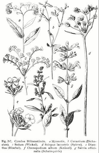 | Keywords: Hegi cymose inforescences.png Abbildung 267 aus Hegi G Illustrierte Flora von Mittel-Europa S CXXXIX Bildunterschrift Fig 267 Cymöse Blütenstände a Myosotis b Cerastium Dichasium c Sedum Wickel d Scirpus lacustris Spirre e Dianthus Büschel f Chenopodium album Knäuel g Salvia officinalis Scheinquirle Figure 267 from Hegi G Illustrierte Flora von Mittel-Europa p 139 Caption Fig 267 Cymose inflorescences a Myosotis b Cerastium dichasium c Sedum scorpioid cyme d Scirpus lacustris anthela e Dianthus fasciculus f Chenopodium album glomerulus g Salvia officinalis verticillastrum Hegi Gustav 1906 Illustrierte Flora von Mittel-Europa mit besonderer Berücksichtigung von Deutschland Oesterreich und der Schweiz zum Gebrauche in den Schulen und zum Selbstunterricht Band I Pteridophyta Gymnospermae und Monocotyledones Künstlerische Leitung Gustav Dunzinger Verlag J F Lehmann München 1906 Gustav Hegi 1876 “1932 Gustav Dunzinger PD-old Hegi Illustrierte Flora von Mittel-Europa Salvia officinalis - botanical illustrations Cymes |