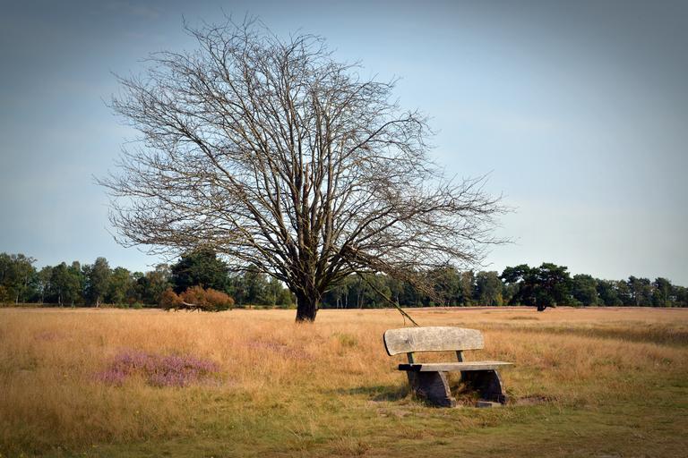 Keywords: heide bank nature heather lüneburg heath nature reserve bench trail tree heathland hiking