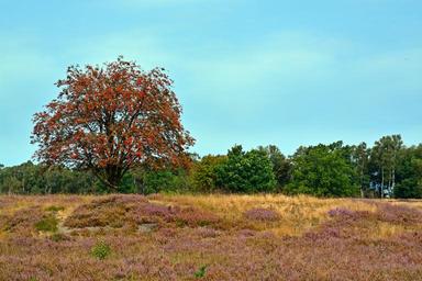 Keywords: heide nature heather lüneburg heath nature reserve bench trail tree heathland hiking