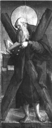 | Keywords: Heiliger Andreas.jpg  c 1535/40 Oil canvas cm Institution Staatsgalerie Stuttgart object history Dauerleihgabe aus Privatbesitz credit line accession number Inv Nr L 1190 Eingescannt aus Anna Moraht-Fromm und Hans Westhoff Der Meister von Meßkirch “ Forschungen zur südwestdeutschen Malerei des 16 Jahrhunderts Ulm 1997 S 194 Reproduction of a painting that is in the public domain because of its age PD-old-100 Paintings in the Staatsgalerie Stuttgart Meister von Meßkirch 16th-century paintings of Saint Andrew Seitenaltäre des Meisters von Meßkirch ehemals St Martin Meßkirch Saint Andrew's crosses |