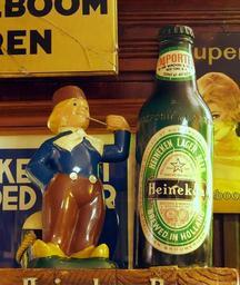 Keywords: Heineken bier reklame fles met man in klederdracht.JPG Photographed at the Bierreclame Museum Haagweg Breda The Netherlands own 2014-11-16 13 14 20 Alf van Beem CC-zero Trademarked Bierreclame Museum Haagweg
