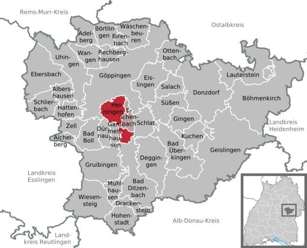 | Keywords: Heiningen in GP.svg  DeLocMaps Heiningen Heiningen Landkreis Göppingen Landkreis Göppingen District of Göppingen Göppingen district L'arrondissement de Göppingen Arrondissement de Göppingen Baden-Württemberg Bade-Wurtemberg Baden-Württemberg Adobe Illustrator <br/> own based on <br/> File Municipalities in Baden-Württemberg svg by TUBS<br/> File Baden-Württemberg HD district svg by TUBS 2010-04-22 Hagar66 based on work of TUBS Hagar66 Commonist Hagar66/licensesection Attribution TUBS/Credits Locator maps of municipalities in Landkreis Göppingen Heiningen Landkreis Göppingen |