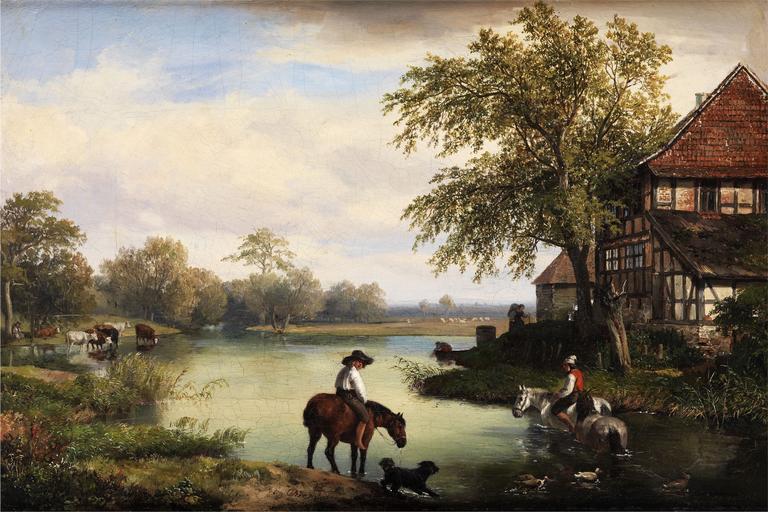 | Keywords: Heinrich Brandes - Reiter am Fluss.jpg  Artwork Creator Heinrich Brandes probably 1850 oil canvas cm 30 42 5 object history credit line Brandes ~ lower center signature accession number 1 http //www schmidt-auktionen de/12_katalog_online php nr 28 mode k kuenstler 4584 Schmidt Kunstauktionen Dresden 04 Juni 2011 Los 07<br/>2 http //www auktion-bergmann de/ufItemInfo aspx a_id 97 i_id 293342 s_id 208 Auktionshaus Bergmann Erlangen 23 Okt 2010 Los 428<br/>3 https //www hampel-auctions com/archive-catalogue-detail html a 98 s 414 c 1380 Hampel Auktionen München 26 Sept 2014 Los 1380 PD-old-100 Heinrich Brandes Landscape paintings of Germany 1850 paintings 1850s landscape paintings Images by Schmidt Kunstauktionen Images from Auktionshaus Bergmann Images from Hampel Auctions |