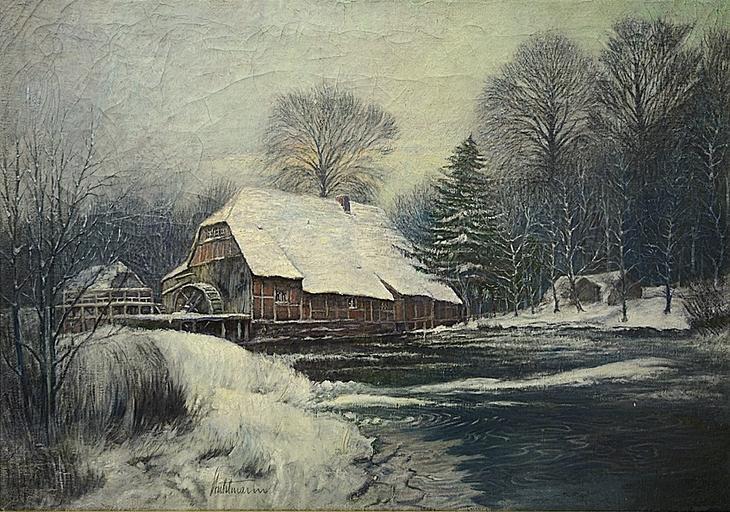 Keywords: Heinrich Stuhlmann - Wintertag.jpg Artwork creator Heinrich Stuhlmann Malerischer Blick auf eine alte Wassermühle mitten im Winter 1880 oil on canvas size cm 100 69 object history credit line Stuhlmann ~ lower left signature accession number http //www ebay nl/itm/HEINRICH-STUHLMANN-1803-1886-WINTERTAG-UM-1880-HQ-/350460684398 ebay nl PD-old-100-1923 1886 Heinrich Stuhlmann Landscape paintings of Germany 1880s landscape paintings Paintings of winter Paintings of watermills |