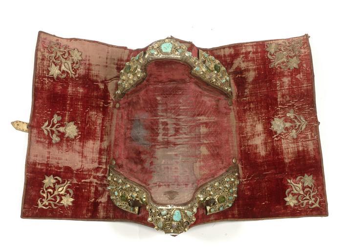 Keywords: Helbild, ovansida, Bethlen Gabor - Livrustkammaren - 56776.tif Sadel av läder sitslängd 270 mm klädd med röd sammet rektangulära kappor fodrade och kantade med brunt skinn I hörnen och på mitten av kapporna samt på bakbommens insida broderad dekor i plattsöm med guldtråd i form av blommor på stjälk med blad <br/><br/>Bommarna smala frambommen h 145 mm bakbommen h 125 mm på utsidan klädda med förgyllt genombrutet silverbleck med yttäckande graverat rankmönster och infattade stenar turkoser av oregelbunden form På båda bommarna dessutom vardera fem stora planslipade gröna stenar 2 sexsidiga och 2 åttsidiga 1 stor sjusidig sten i mitten I silverplåten inslagen tughra Baktill krampa för ryggstycke <br/><br/>Bom överklädd med läder rektangulära hål för stigläder fyra stroppar av vitt läder för sadelgjord original caption helbild ovansida - LRK 9043 Bethlen Gabor<br/> Nyckelord Sammet Guldtråd Stormaktstiden Röd Bomsadel Blommor Broderad Föremålsbild early other date century 17 turquoise - silver - velvet Färg röd material sammet - leather - gold thread size mm 510 LRK Gabor Bethlen av Iktár furste av Siebenbürgen Kristina av Sverige Gustav II Adolf av Sverige The Arts of Islam 1976 Livrustkammarens basutställning 1978 Gustav II Adolf 350 år efter Lützen 1982-1984 Islamiskt i de kungliga samlingarna 1984 Orientalisk textilkonst Basutställning tughra Turkiet tughra Turkiet place of origin original filename lm_dig1291 45578 inventory number LRK 9043 56776 CC-BY-SA Göran Schmidt <gallery caption Different images of same object > File Detalj Bethlen Gabor - Livrustkammaren - 56775 tif File Detalj Bethlen Gabor - Livrustkammaren - 39656 tif File Detalj Bethlen Gabor - Livrustkammaren - 31096 tif File Helbild undersida Bethlen Gabor - Livrustkammaren - 48215 tif File Detalj Bethlen Gabor - Livrustkammaren - 5411 tif File Bomsadel Bethlen Gabor - Livrustkammaren - 52387 tif File Detalj Bethlen Gabor - Livrustkammaren - 31097 tif File Detalj Bethlen Gabor - Livrustkammaren - 22535 tif File Detalj Bethlen Gabor - Livrustkammaren - 82457 tif File Detalj Bethlen Gabor - Livrustkammaren - 39657 tif File Detalj Bethlen Gabor - Livrustkammaren - 13972 tif File Detalj Bethlen Gabor - Livrustkammaren - 65336 tif File Helbild Bethlen Gabor - Livrustkammaren - 48214 tif File Helbild Bethlen Gabor - Livrustkammaren - 73898 tif </gallery> Göran Schmidt Sweden 1611-1718 Red Flowers in art Horse equipment Media contributed by LSH unmatched keyword Color images from Livrustkammaren Horse tack images from Livrustkammaren Media contributed by LSH 2013-10 |