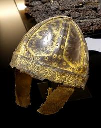 Keywords: Helmet, 'Furstengrabes', Gammertingen, Kreis Sigmaringen, gilt copper and iron - Landesmuseum Württemberg - Stuttgart, Germany - DSC02903.jpg en Exhibit in the Landesmuseum Württemberg - Stuttgart Germany 2015-12-06 07 19 54 own Daderot other versions PD-old-100 cc-zero Medieval metalwork in the Landesmuseum Württemberg Gammertingen helmet |