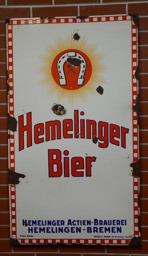 Keywords: Hemelinger Bier.jpg en Billboard Hemelinger Beer Bremen de Werbeschild der Hemelinger Actien-Brauerei Bremen-Hemelingen own Monster4711 2012-09-23 Beer advertising Hemelinger beer Cc-zero