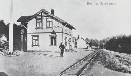 Keywords: Hemnes stasjon 1915.jpg nb Hemnes stasjon på Urskog-Hølandsbanen Postkortmotiv fra 1915 Gjengitt i boken «Banen og bygda Tertitten gjennom hundre år» 1915 http //urn nb no/URN NBN no-nb_digibok_2010120708093 187 author other versions Custom license marker 2016 12 18 PD-old-70-1923 Hemnes stasjon |