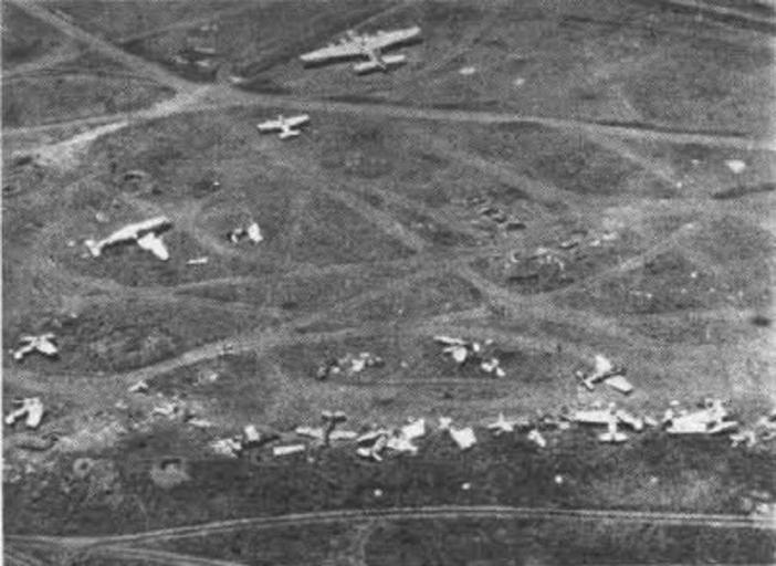 Keywords: Henderson Field wecks NAN2-47.jpg Aerial view of aircraft wrecks at Henderson Field Guadalcanal Solomon Islands in 1942/43 There are many wrecked Grumman F4F-4 Wildcats visible in the lower part of the picture and some Douglas SBD Dauntless dive bombers The larger wreck seems to be a Douglas C-47/R4D At the top of the picture are a - apparently undamaged - Wildcat and a Boeing B-17E/F Flying Fortress U S Navy Naval Aviation News February 1947 http //www history navy mil/nan/backissues/1940s/1947/Feb47 pdf 1942/43 USN PD-USGov-Military-Navy Cactus Air Force
