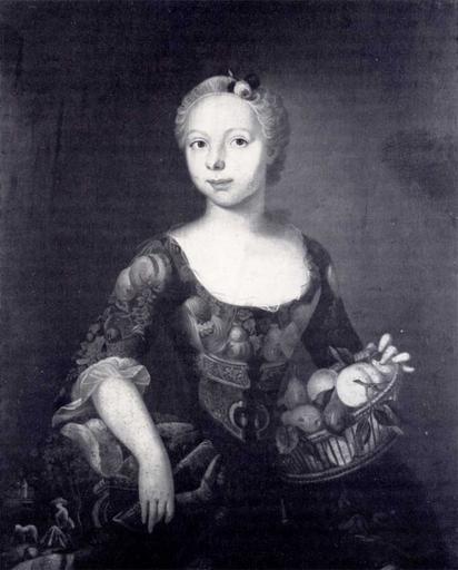 Keywords: Hendrica Swanenburg.jpg Hendrica Swanenburg 1732-1801 echtgenote van Arnoldus ter Croije secretaris van de meierij van Den Bosch 1742 Gallery scan van een afbeelding in Met goed fatsoen ISBN 90 6707 095 5 other versions PD-old-100 DEFAULTSORT 1742; Hendrica Swanenburg Pieter Frederik de la Croix 18th-century portrait paintings location missing 1742 portrait paintings 1732 births 1801 deaths 18th-century portrait paintings of girls at half length 18th-century portrait paintings of girls at three-quarter length 18th-century women of the Netherlands Black and white reproductions of portrait paintings in color Engageantes in art Female hair fashion in art Females with hair flowers in art Flowered clothing in art Portrait paintings of standing girls Panniers clothing in portrait paintings Swanenburg Baskets in portrait paintings Portraits with fruits Portrait paintings with neutral background 1740s portrait paintings |