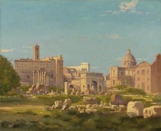 | Keywords: Henri-Joseph Harpignies - Le Forum romain.jpg Artwork Creator Henri Harpignies oil canvas cm 33 3 41 2 object history Sale Renaud Paris July 1 1981 lot 154<br/>Sale Maître Georges Blache Hôtel Rameau Versailles October 4 1981 lot 168<br/>Sold Sotheby's New York February 24 1987 lot 40<br/>Hyde Park Antiques New York<br/>Private Collection Texas acquired from the above credit line exhibition history Paris Galerie Charpentier Autour de 1900 1950 no 95 H Harpignies ~ lower left signature accession number http //www sothebys com/de/auctions/ecatalogue/2011/19th-century-european-art-n08783/lot 83 html Sotheby's New York 04 November 2011 lot 83 PD-old-auto-1923 1916 Henri Harpignies Forum Romanum in art Landscape paintings of Italy Rome Images from Sotheby's |