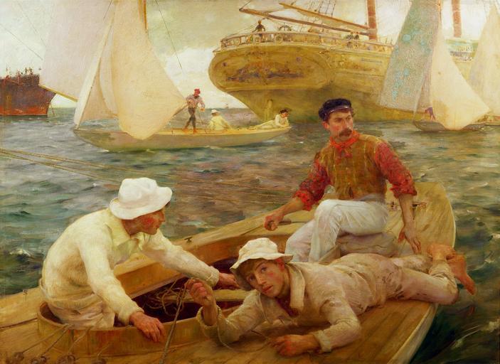 | Keywords: Henry Scott Tuke - The Run Home.jpg Artwork Creator Henry Scott Tuke 1902 Oil on canvas cm 119 162 Royal Cornwall Museum Truro Cornwall UK http //www bbc co uk/arts/yourpaintings/paintings/the-run-home-14508 BBC Your Paintings object history credit line gift 1930 accession number TRURI 1930 14 77706 PD-old-auto-1923 1923 Sailors by Henry Scott Tuke People with boats in art Oil paintings of seascapes 1902 paintings | ||||