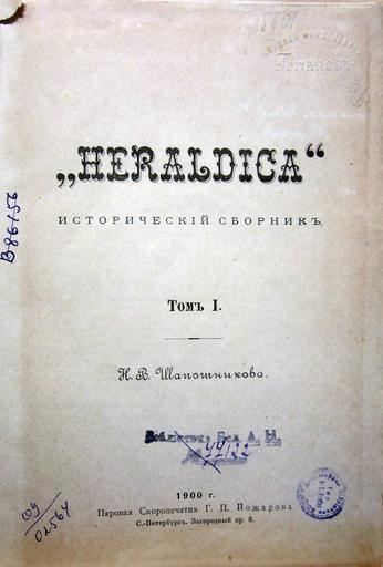 Keywords: Heraldica of shaposhnikov2.jpg en Титульный лист исто ического сбо ника «Heraldiсa» под едакцией Шапошникова В Спб 1900 год 2012-01-24 own Gruszecki cc-by-sa-3 0 PD-old Uploaded with UploadWizard Heraldic of Shaposhnikov