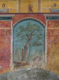 | Keywords: Hercules fresco Oplontis.jpg en On the wall of the niche on the east side of the caldarium is a large fresco of the mythological scene of Hercules in the Garden of the Hesperides which is echoed in the central panels of the adjoining walls Along the upper frieze are a series of fine miniature landscapes Villa Poppaea Oplontis Italy fr Fresque d'Hercule à la recherche des pommes d'or dans le Jardin des Hespérides Villa Poppaea Oplontis Italie 2015-07-22 own Jebulon other versions 40 757092 14 452717 cc-zero Ancient Roman frescos in Villa Poppaea Torre Annunziata Twelve Labours Hercules in ancient Roman paintings Uploaded with UploadWizard Quality images by Jebulon QualityImage |